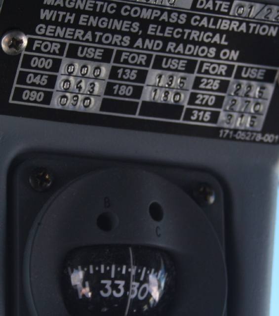The compass is not only affected by Earth's magnetic field, but also by those of onboard avionics and electrical components. These components may cause the compass to indicate slightly right or left from what it should show. This difference is magnetic deviation.